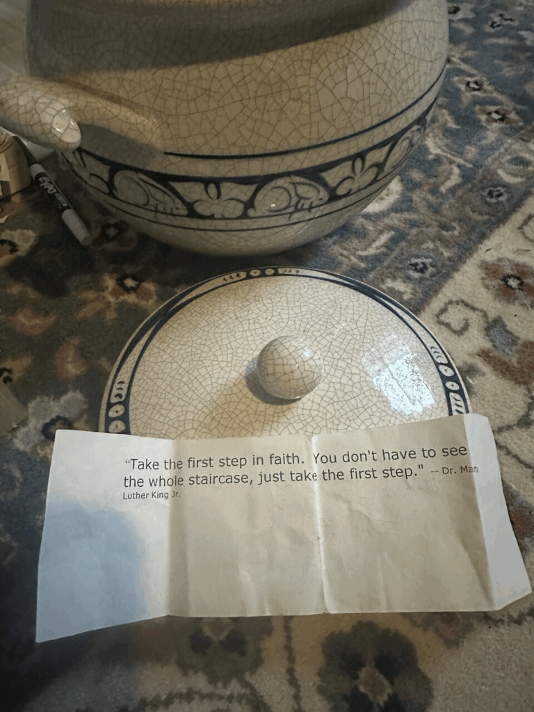Trust and take that first step as our masterful teacher Dr. King tells us.